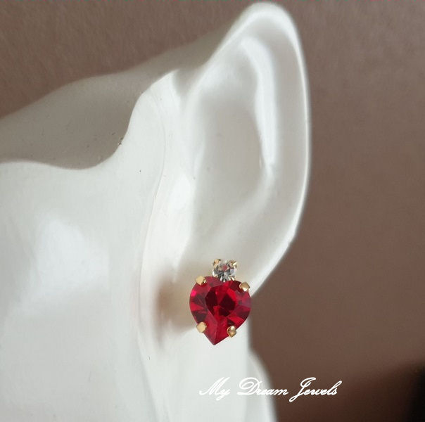 Oorstekers met Swarovski Hart Light Siam Red