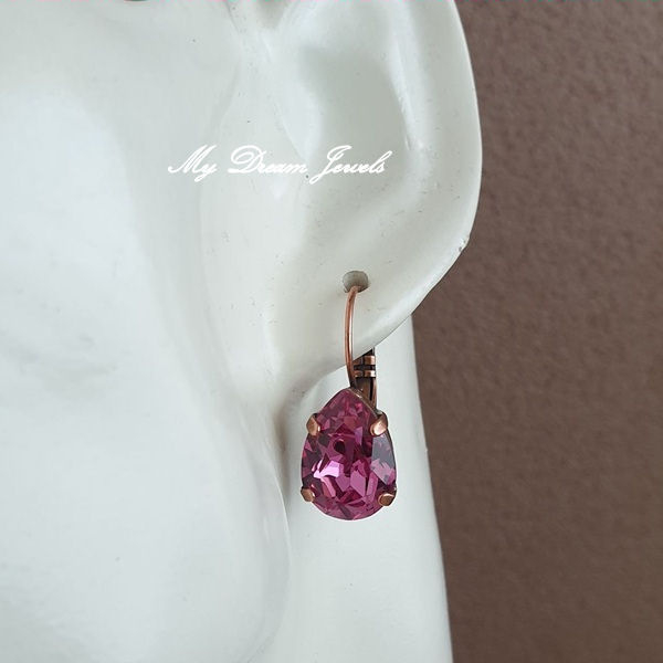 Oorbellen Belle met Swarovski Druppel "Dark Rose"