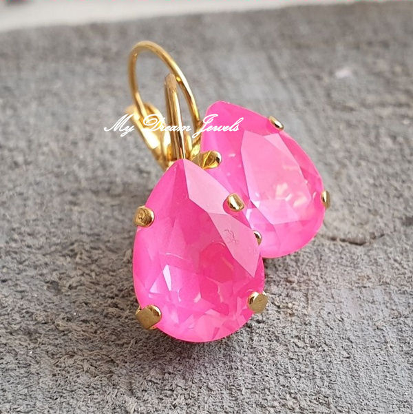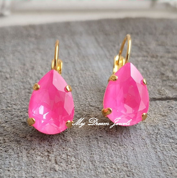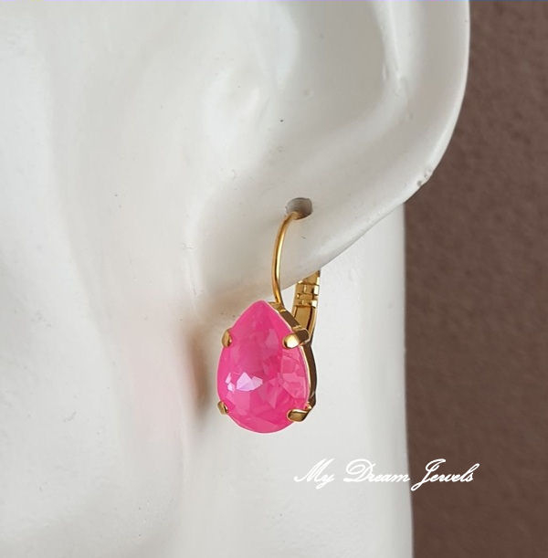 Oorbellen Belle met Swarovski Druppel "Crystal Electric Pink "