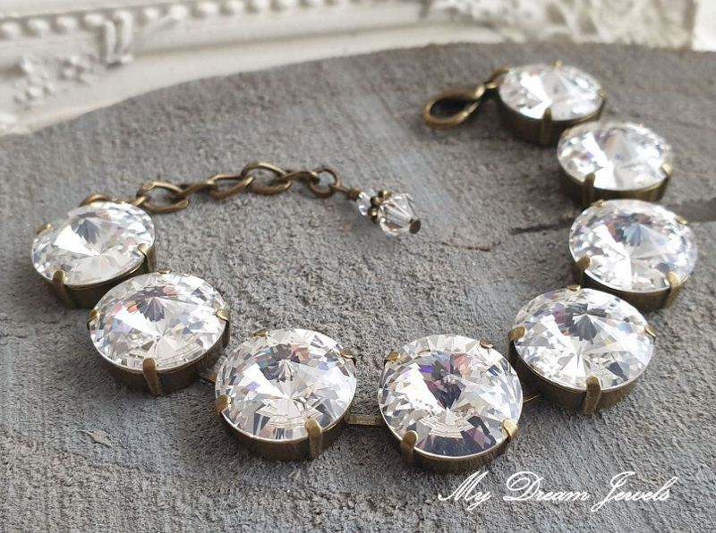 Deze schitterende armband met grote heldere crystal Swarovski rivoli stenen is een echte eyecatcher